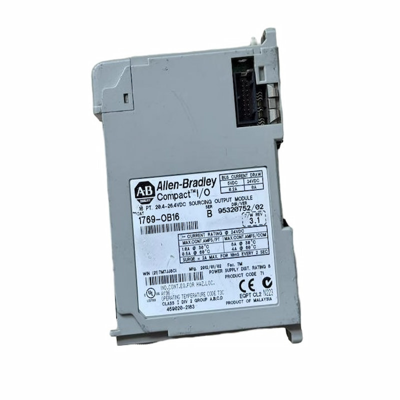 The 1769-OB16 is a 1769 Compact I/O 16-channel 24VDC discrete output module for powering industrial AC/DC electrical loads with CompactLogix controllers.