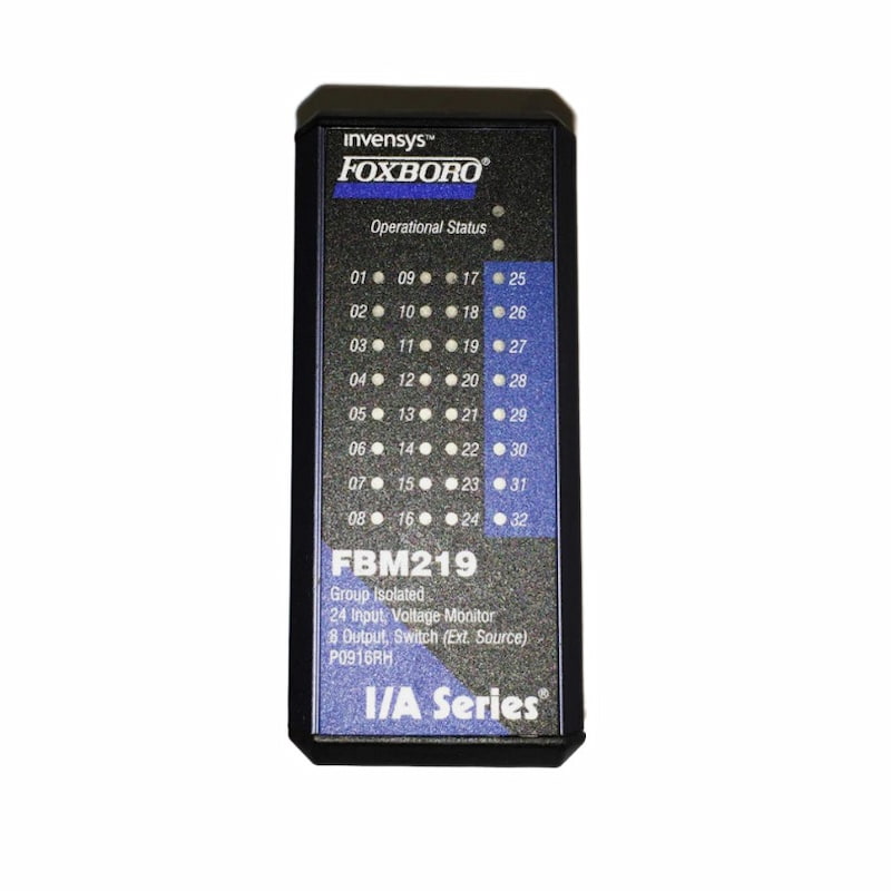 The FBM219 Discrete I/O Module has 24 discrete input channels and 8 discrete output channels